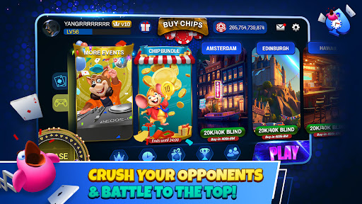 Put your poker skills to the test in the city of your choice! Unlock new destination cities, from the tropical paradise of Hawaii to the vibrant streets of Chicago.