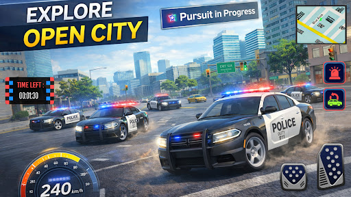 In police car chase you have to chase criminals and gangsters and play the role of a police car driver in car driving chase and cop duty game. In the car chase simulator, we have added different missions and modes in the police chase simulator. In a police car cop simulator, you save your city from criminals and thieves and do your job honestly. Play Police Car Chaser and enjoy the realistic theme of cop car chase games. In Cop duty games we give you police car chase mode in which the thieves rob the bank and try to escape from the spot go and catch them all on the spot in police car pursuit and police racer games car chase.