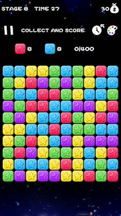 3. until all the connectable blocks are selected, the game challenge is over, and the score obtained by eliminating the stars determines whether or not to pass the test