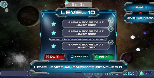 - Hit space asteroids 10 times with balls to blow them apart into treasure