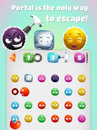 The higher the level of the game, the more types of creatures. In addition - the ice cube blocks the way to the portal. You can crash it with a hammer.