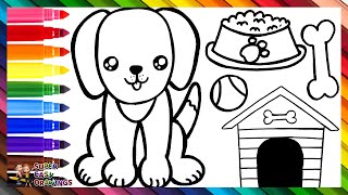 Drawing and Coloring 3 Cute Dogs With Accessories 🐶🐾🦴🐕🥫🏡🌈 Drawings for KidsSuper Easy Drawings
