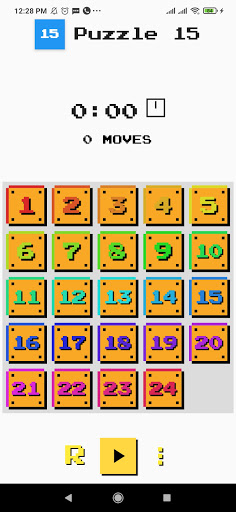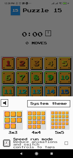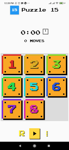 Puzzle Fifteen (15) with several features,* Has 3 sizes (3, 4 and 5) rows.