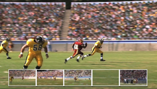 Professional quarterback simulator puts you in the helmet of a real quarterback in a football game.