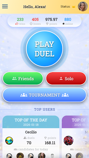 - Real-Time Quiz Battles and Tournaments with Players WorldwideDownload Multiplayer Trivia Quiz Duel to start battling real people or play with friends.