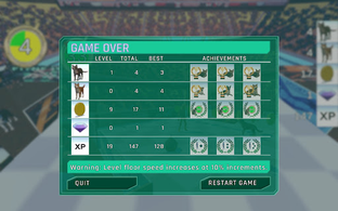 Your scores are accumulated and saved in memory. You can quit the game and return later to resume at the beginning of the level at which you stopped. Or you can start a New Game and erase your current progress.