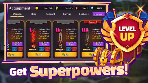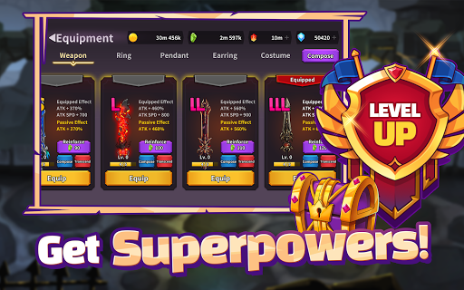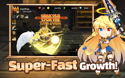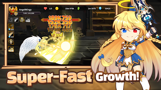 Experience a fun and action-packed growth RPG with easy-to-use controls and automated hunting. Say goodbye to endless tapping and clicking as you progress quickly and effortlessly through the game. Watch the Archangel showcase its spectacular swordsmanship along with other powerful creatures, such as the Death Knight and the Reaper, that cannot be easily defeated.