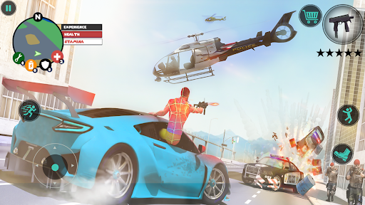This rope hero free offline game offers a whole amusement park, explore the world and find exciting activities. You can also just drive around the city by car and listen to music.