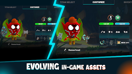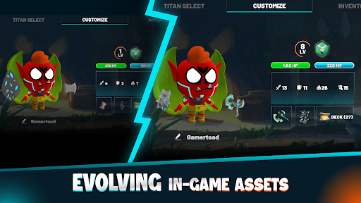 Step into the Arena and showcase your skills to your opponents with tactical plays, clever combinations and quick decision making. Achieving success means inflicting significant damage and walking away with valuable rewards. As you accumulate more XP, level up your Titan to improve their strategy by adding new scrolls and weapons to their arsenal. Furthermore, try a new style of play by creating another Titan with a different elemental type, adding an extra layer of excitement and depth to the game.