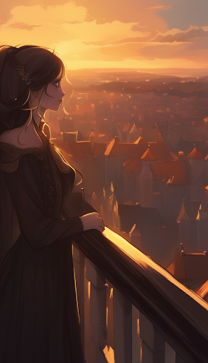 The town of your kingdom is still a bustling place, but it is also more divided than ever before. There are those who still support your father's policies, and there are those who want to see a change. The background tree is still a large oak tree, but it is now surrounded by smaller trees, representing the growth of the kingdom.