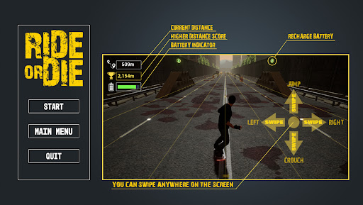 But don't worry - all your efforts won't go unnoticed. The game will track your distance records, so you can see how far you've come and challenge yourself to go even further. Whether you're competing against your friends or trying to beat your own high score, "RIDE OR DIE" offers endless replayability and hours of thrilling gameplay. So get ready to hop on your Onewheel and see how far you can go!