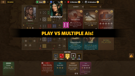 One of the best features of Roll Player is its cross-platform online multiplayer capability. Players can enjoy private games with friends or challenge themselves with five levels of AI. Local multiplayer is also available for face-to-face gameplay with friends on the same device while the Solo mode allows players to challenge themselves.