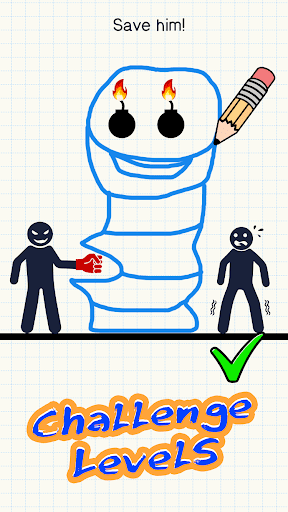 In the game, you can protect the stickman from bombs, bad guys and many other life-threatening attacks by drawing a line! You can draw stunts, walls, shelters and any kind of protection to help the stickman overcome difficulties. This is a great game to develop your sense of logic and improve your brain chile!