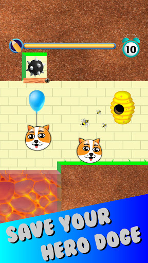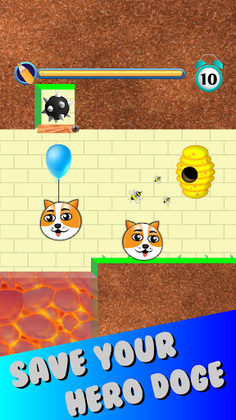 Doge rescue: Draw to save the dog is a puzzle game. Your doge is in danger draw one line with your fingers to create a wall to save the dog bees attack in draw to save the doge game. You need to save the dog draw to save with the painted wall for 10 seconds during the attack of the bad bees, hold on for 10 seconds and you will rescue the dog. Use your brain to save my pets.
