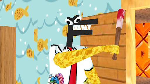 Please stay away from Scary alphabet rainbow. If you make a sound, the scary F letter and Granny blue monster sponge will detect you.