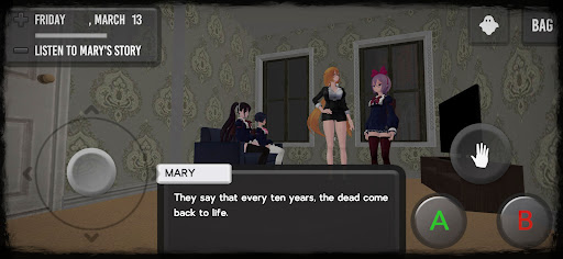 On a lovely school day, Akane finds herself in a crazy situation. Her classroom has turned into a haunted house. There lies many secrets, mysteries, and also ghosts! Yes, it is true that Akane can see ghosts with her own eyes. At first, she finds it hard to study in the class. All she can do is escape and keep walking alone. On Friday night, her neighbor Eileen takes her on an adventure in the abandoned school's hill. Akane can't refuse because she knows that Eileen is a prankster. And from behind, a stranger yandere girl named Sakura follows them silently...