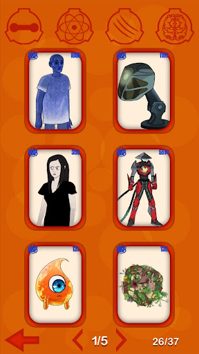 Each SCP card has 4 characteristics that are used in battles. At the beginning of the game, you will have 8 SCP cards open. Earn points to use them to get new cards and increase the collection. Each card corresponds to a separate SCP object.