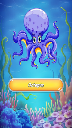 In this many different different sea animals. So see animal pic and you get animal name with voice. In this also easy to hard 30+ animal puzzles. So you need to play one by one and learning.