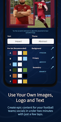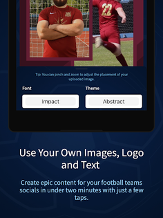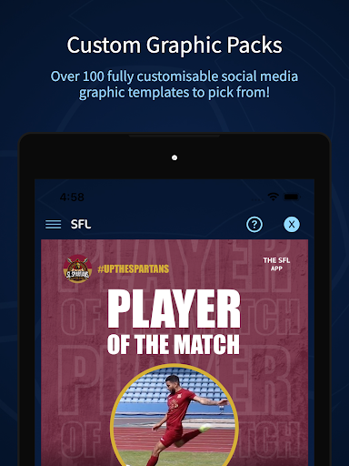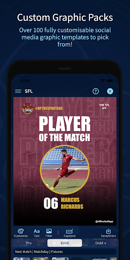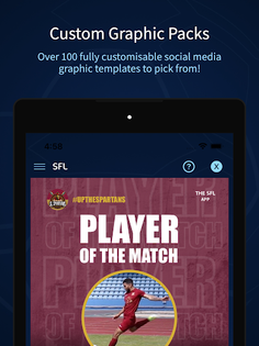 Create epic sports content for your social media pages using our matchday graphic packs! The SFL is the best app for making your own sports graphics for you social media pages, using your own logo and images.