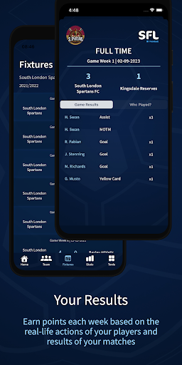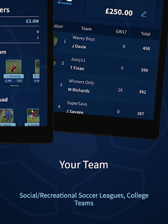 Create your own private league and invite your team mates, friends and supporters to join. You each create a fantasy team made up of 6 players from your 11-a-side Saturday/Sunday/Amateur squad and earn points throughout the soccer season based on the real-life results of your matches each week - goals, assists, yellow cards, red cards clean sheet and more!