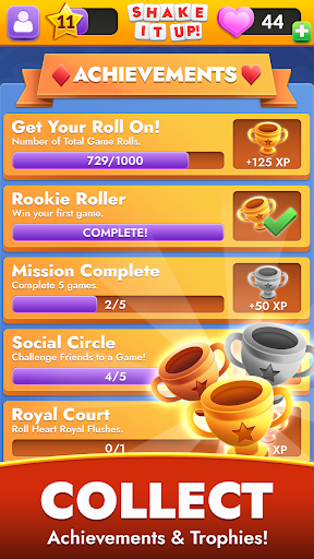 But that's not all - Shake It Up! Cards on Dice also offers a full solo play experience, with three levels of challenges to test your skills against computer opponents. Earn achievements, trophies, and experience points as you strive for new rewards and progress even faster. And with options to bet simulated coins or even compete in quick-play mini-games, there's always something new to keep you entertained.