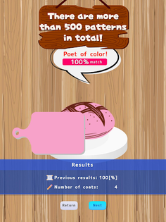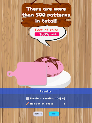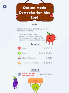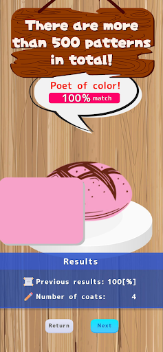 This mode adds a "competitive" element to the regular mode! The number of times you can mix paints is limited to 10 times. Try to create a closer color with fewer attempts. The player rate is calculated according to the result of the game. The rate is calculated in the form of a world ranking and updated in real time. Compete with rivals around the world!