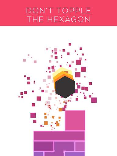 The game’s concept revolves around a tower of blocks with different shapes, and a hexagonal block on top of it. Your goal is to guide the hexagon and move it down the screen to score points. You can make this happen by tapping on different blocks, making them disappear and leaving behind space for the hexagon to move down.