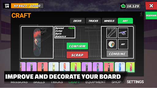▶ CRAFT custom skate parts into complete skateboards with unique physical properties