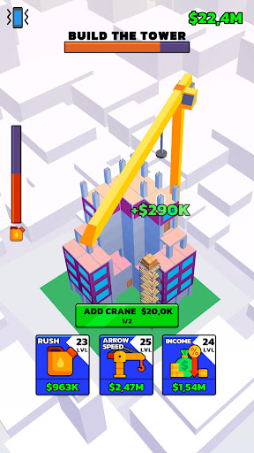Upgrade your crane to finish building faster! Save money to buy an extra crane and build more efficiently! Boost your cranes, but don't forget the fuel isn't endless!