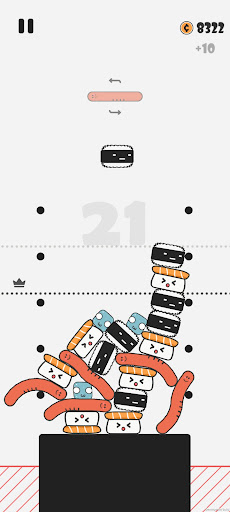 🎯 The main objective is to stack the highest tower of kawaii sushis and slimy foods without dropping any outside the platform.