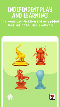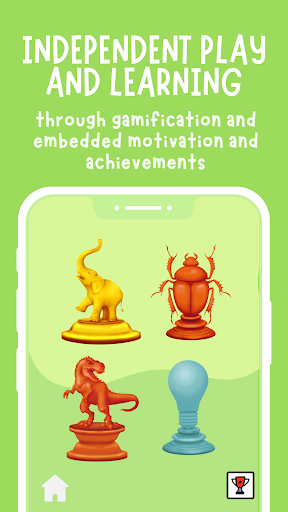 3. Unlock Rewards: As the child improves their quiz scores, they unlock trophies. Completing a topic unlocks a big game where skins and additional items can be obtained by answering knowledge retention questions instead of purchasing them with real money.