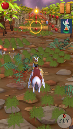 Be sure to press the fly button once the Dopey Dwarf is accumulated and Pegasus will fly off the ground, but beware of the flying creature in the air and Witch on the ground.