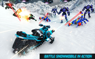 Sit behind the trail bike and enjoy fighting with snowmobile that have the unique power of transforming itself to destroy enemies furiously in snow mountain bike robot game for free.