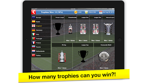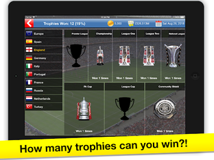 There are 750 soccer clubs to own across 9 European countries including England, Spain, Germany, Italy, France, Russia, Portugal, Turkey and the Netherlands. Each country has realistic league and cup competitions, meaning there are 64 soccer trophies to compete for in total – how much silverware can you win?!