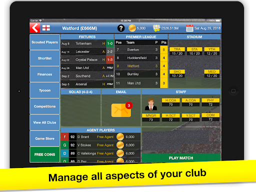 There are 17,000 soccer players in the game and your scouts and manager will regularly provide reports on as many as they can. Make offers to buy or loan them, using your business acumen to negotiate transfer fees and personal terms. You’ll be in control of player sales too – will you accept that big offer for your star player? Will you back your manager in the transfer market?