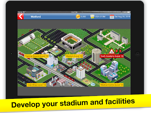 Continually level up your soccer club’s stadium and facilities to help your club grow. The Stadium, Training Ground, Youth Academy, Medical Centre and Club Shop can all be expanded, allowing your club to rival the top teams in Europe.