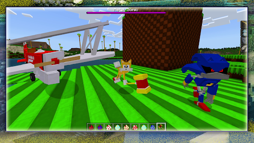 We invite you to play the racing Sonik game with adventures for kids right now! Our team has released an exciting app Sonic the hedgehog 2 racing game with skins for Minecraft PE. If you love Sonic run and want to get a dose of emotions from the game - download this app and go on an adventure with Sega Games characters from Sonik Dash 2, Sonic Boom, Sonic the Hedgehog 2 and Sonic 3. Choose from Knuckles, Emma Rose, Tails, Super Sonic and more to unlock unique superpowers. Sonic Boom: Sonik Dash 2 is a cool running game that runner lovers will enjoy and will let you collect rings, score points and advance to the next level. Download the Sonic the hedgehog 2 mod to immerse yourself in the fascinating world of Dream Interpretation, driving around the playing field with your friends to defeat the evil Eggman. Control your favorite character, upgrade your skills, complete tasks and jump, run and damage enemies to complete all levels of Sonic the Hedgehog for Minecraft PE. Feel the real sensations and rock with the prickly hedgehog Sonik and his friends in the classic Sonic running game. Download our application about the hedgehog Sonic Boom 2: Sonic Dash 2 for Minecraft PE and invite your friends!