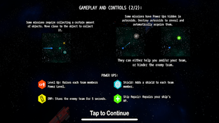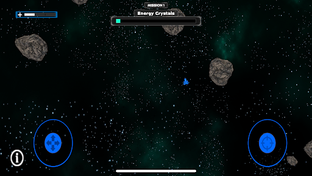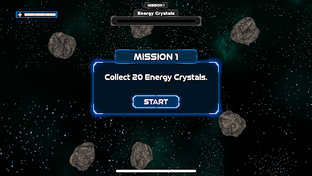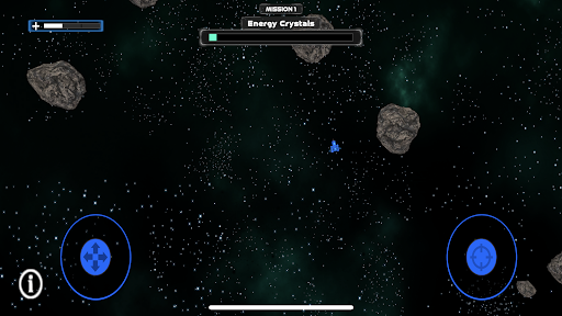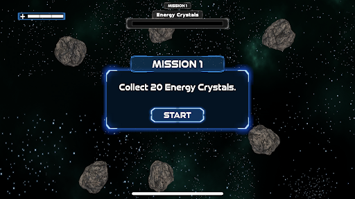 Complete 9 space missions — collect energy crystals, defeat enemy ships, steer carefully to avoid obstacles, and protect your base.