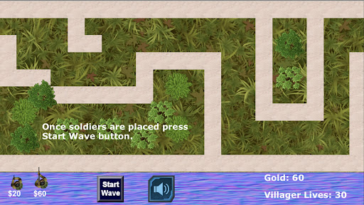 Giant spiders are headed for the town and your job is to strategially place soldiers to prevent the spiders from getting to the town.