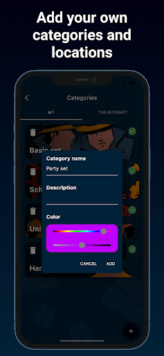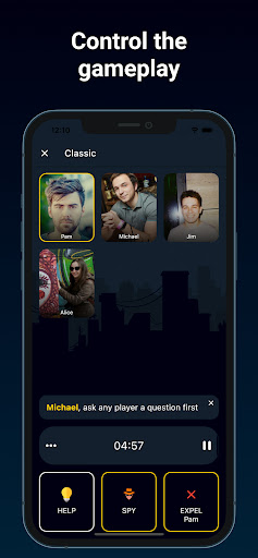 You will be able to create online distributions, receiving a code by which other players will connect, choose the number of players, the number of spies and the leader, add or remove hints, set a timer to control the time of a round or a move, and add roles that affect the player's behavior in the course of the game.