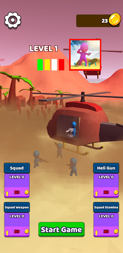 You have to protect your squad from enemies by helicopter By updating weapons and capabilities, you can defeat the enemies with double forcesBe careful to destroy the enemies before they reach your squad!