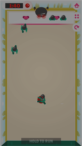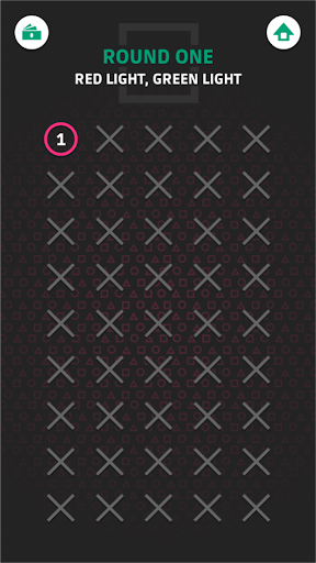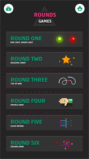 Play Red light, green light, dalgona candy, tug of war, marble game, glass bridge and the knife game and try to win all 270 levels.