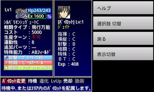 【特記事項】 Ver.1.25 ・戦闘時の縮小表示ができるようになりました。 ・溜め武器の設定「2回タッチで発射」を連射武器にも適用。 Ver.1.24 ・溜めがうまく操作できない端末向けに、溜め武器の設定「2回タッチで発射」の機能を追加しました。 ・敵コンピュータの戦闘アルゴリズムを修正しました。 Ver.1.23 戦闘時の処理速度が、かなり速くなりました。 Ver.1.21 体験版からデータを引き継ぐことが出来るようになりました(※)。 戦闘時の処理スピードがアップしました。 ※ 体験版もVer.1.21にバージョンアップのうえ、保存しなおす必要があります ロボット戦争シミュレーションゲームです。 戦闘では、シューティングに近いアクションゲームで敵を倒していきます。 6つの勢力から1つを選び、全領土の制圧を目指します。 部隊を戦わせていくことで、ユニットがレベルアップや進化し、強力になっていきます。 このゲームには、体験版が別アプリとして存在します。 体験版では、途中までプレイすることが出来ます。 有償版をプレイする前に、必ず、体験版で動作確認を行うことを強く推奨します。 体験版をダウンロードせずに、有償版をダウンロードして「自分の機種で遊べない」といったクレームは受け付けかねます。
