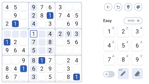 ✔ Customize the game to your preferences - turn on/off sounds, highlight identical numbers or peer cells, auto-remove notes, show mistakes, etc.