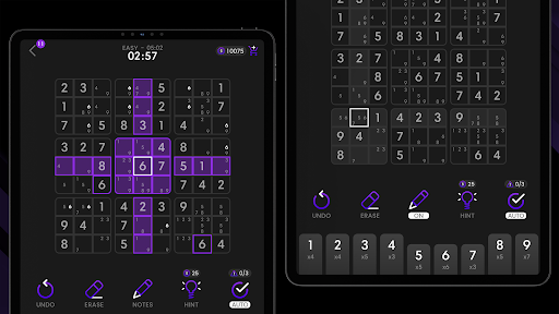 ✔️ Option to turn on / off highlight identical numbers and turn on / off sound effects