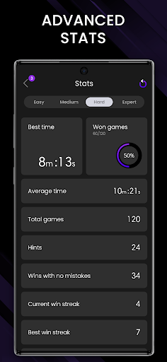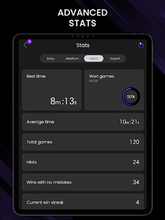 ✔️ Advanced statistics and analytics to track your progress for every difficulty level of daily Sudoku Puzzles