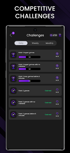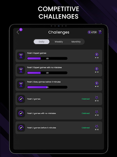 ✔️ Daily Sudoku Puzzles / weekly and monthly Soduku Challenges common to math crossword puzzle , kenken , mathdoku , sodoko board games , mind games , calcudoku , memory games , kakuro , nonogram games , focus games and thinking games - Complete the logic sudoko challenges and collect trophies 🏆