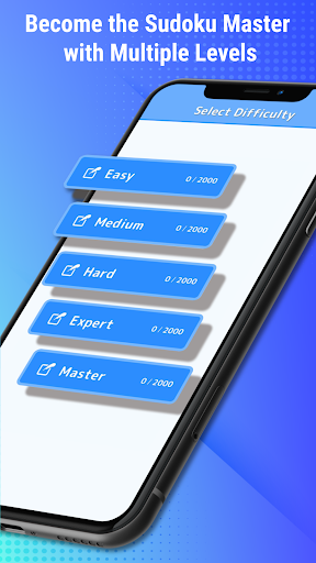 2. Become the Sudoku Master by crossing five perfectly balanced difficulty levels: Easy, Medium, Hard, Expert, and Master.