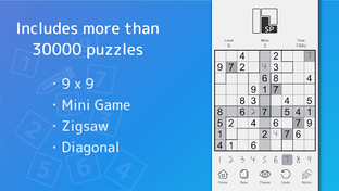 Sudoku(Number Place) is a puzzle game where you fill in a 9x9 grid divided into 3x3 blocks with the numbers 1-9.