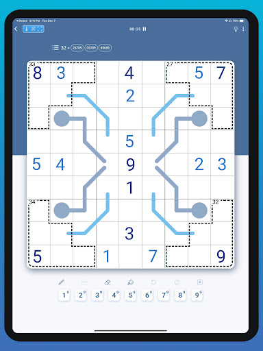 Sticky digit mode, filter by favorite variants, remaining cells of a digit, select multiple cells at once, select multiple cells at distributed locations of the board, multiple pencil marks styles, double notation, auto remove pencil marks, highlight matching digits and pencil marks, multiple error modes, performance tracking for each puzzle, statistics, and accomplishments. In addition, unlimited Undo/Redo and various cell marking options - highlights and symbols, Combinations Panel for Killer and Sandwich boards, track and improve solving time, board preview, easy resumption of unfinished boards, and compatibility with mobile phones and tablets.